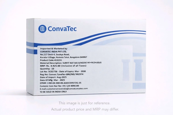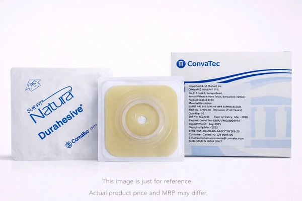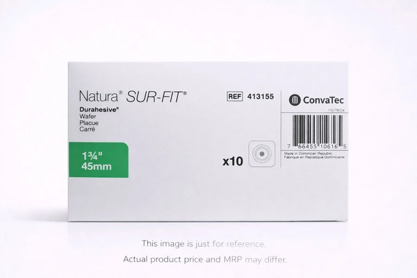 The Convatec Sur-Fit NAT S4S D/Hesive WFR 45MM (Code: 413155) is a cut-to-fit, water-resistant skin barrier designed for reliable ostomy care. Featuring Durahesive® technology, it swells to create a secure seal, protecting the skin from irritation and leaks. With a 45mm snap-on flange, it fits seamlessly with Sur-Fit Natura® pouches and is ideal for patients with semi-formed to soft stool output. ๐ช๐ก
