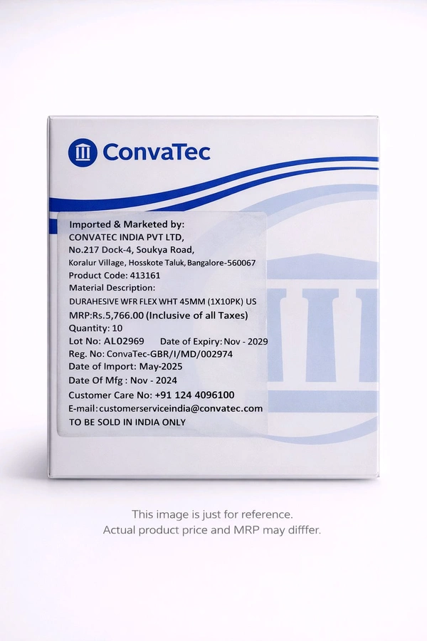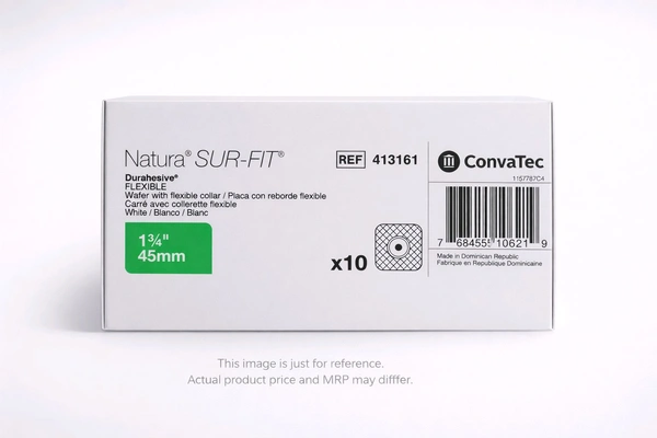 The Convatec Durahesive WFR Flex WHT 45MM (Code: 413161) is a skin barrier ideal for patients with liquid or semi-formed stoma output. Featuring Durahesive® technology, a flexible 45mm white flange, and skin-friendly adhesive, it ensures a secure fit, leak protection, and comfort throughout the day. Compatible with Convatec Natura® pouches, it's perfect for ileostomy or urostomy care.