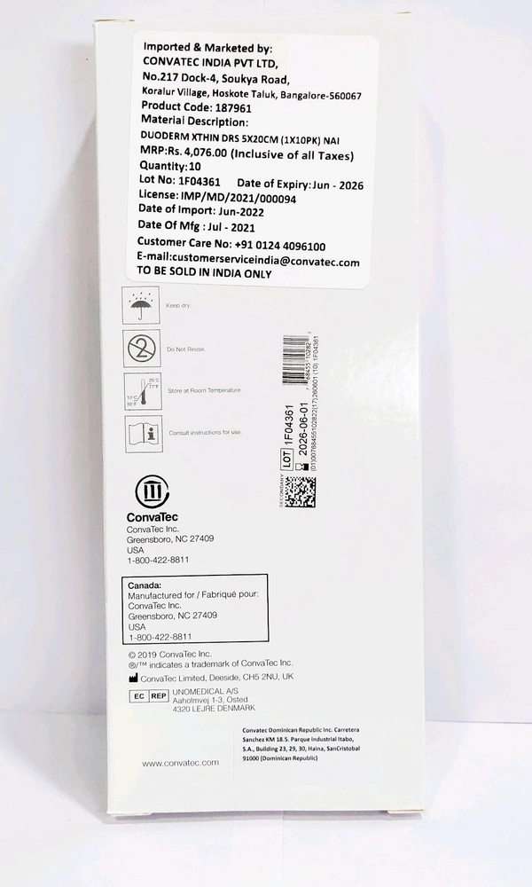 DuoDERM XThin DRS (5x20 cm) is a highly effective hydrocolloid dressing designed for the management of lightly exuding wounds. Featuring a unique ConvaTec hydrocolloid formulation, this dressing provides optimal performance in maintaining a moist wound healing environment, which is essential for promoting faster and more effective healing.