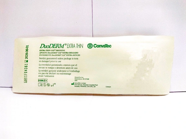 The dressing's vapour-permeable outer film allows for the passage of water vapor while maintaining an occlusive, moisture-retentive barrier against external contaminants. This creates a protective layer over the wound, helping to prevent infection while keeping the wound bed hydrated. The thin, flexible nature of DuoDERM XThin allows for better comfort and conformity to the contours of the skin, making it an ideal choice for use on a variety of wound types, including abrasions, minor burns, pressure ulcers, and surgical wounds.