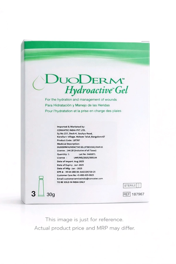 Duoderm HydroActive Gel (3TBEX30G) by Convatec is a sterile hydrogel designed to treat dry to lightly exuding wounds. It helps maintain a moist healing environment, softens necrotic tissue, and promotes gentle debridement. 🌿 Packaged in a 30g easy-to-use tube, it's ideal for use on pressure sores, ulcers, surgical wounds, and burns. 💧 A soothing, non-irritating formula suitable for sensitive skin and can be used with or without a secondary dressing. ✅